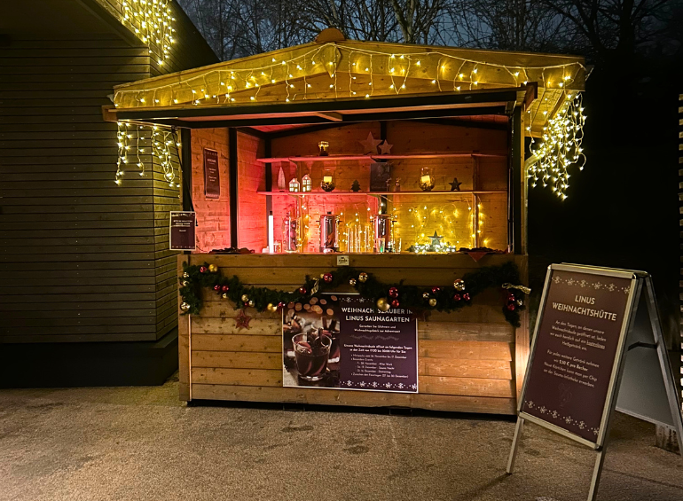 An ausgewählten Tagen erwarten Sie von 17:00 bis 20:00 Uhr in unserer liebevoll dekorierten Weihnachtsbude heiße Getränke und köstliches Weihnachtsgebäck – perfekt, um nach dem Saunagang zu entspannen und die Vorweihnachtszeit zu genießen: